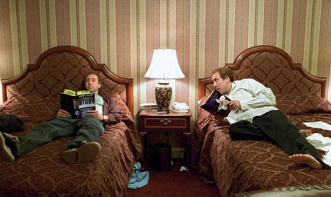 回到影片本身,《天才不能承受之重》(The Unbearable Weight of Massive Talent,以下简称《天才》)这个片名拗口,令人想到《暖暖内含光》(Eternal Sunshine of the Spotless Mind)的影片企图成为一部查理·考夫曼式的元电影/心智游戏电影,从剧情设定上,凯奇饰演自己(但在影片中却经常被称作“尼克·凯奇”)——一个遭受中年危机的好莱坞明星,很像是其2002年出演的《改编剧本》,在这部影片中,他成为了影片编剧查理·考夫曼的化身,与此同时也饰演他的哥哥,两人的性格完全不同。