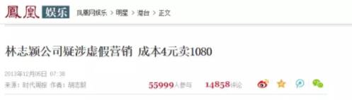 很快正式打脸的时刻就来了,林志颖公司涉嫌虚假营销,成本四块钱的东西竟然卖到1080块!