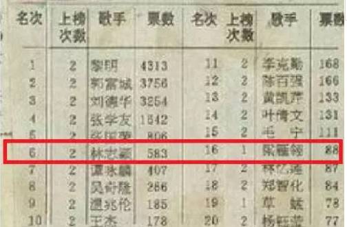 歌手排名榜上,他也仅排在红出宇宙的张国荣的后边。