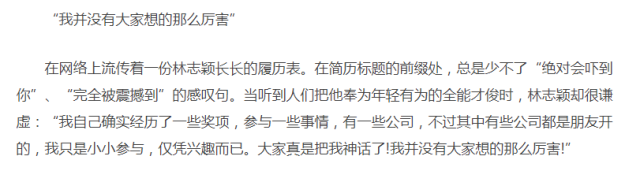 这份简历不知道是谁写的,反正就突然火起来了,连林志颖自己都很懵逼,只能谦虚地说没有那么厉害。