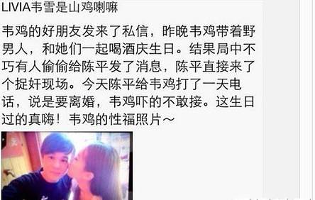 当时还有网友爆出韦雪老公发现了她婚内出轨的痕迹