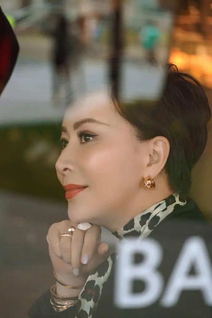 刘嘉玲当天穿了一件豹纹的丝质衬衣,外搭一件黑色的小开衫,衬衣上的长领结和开衫的金色纽扣为整体造型增添了亮点,使得刘嘉玲看起来非常有贵妇气息,不过她本身就是个富婆,穿成这样也刚好符合了自己的身份。