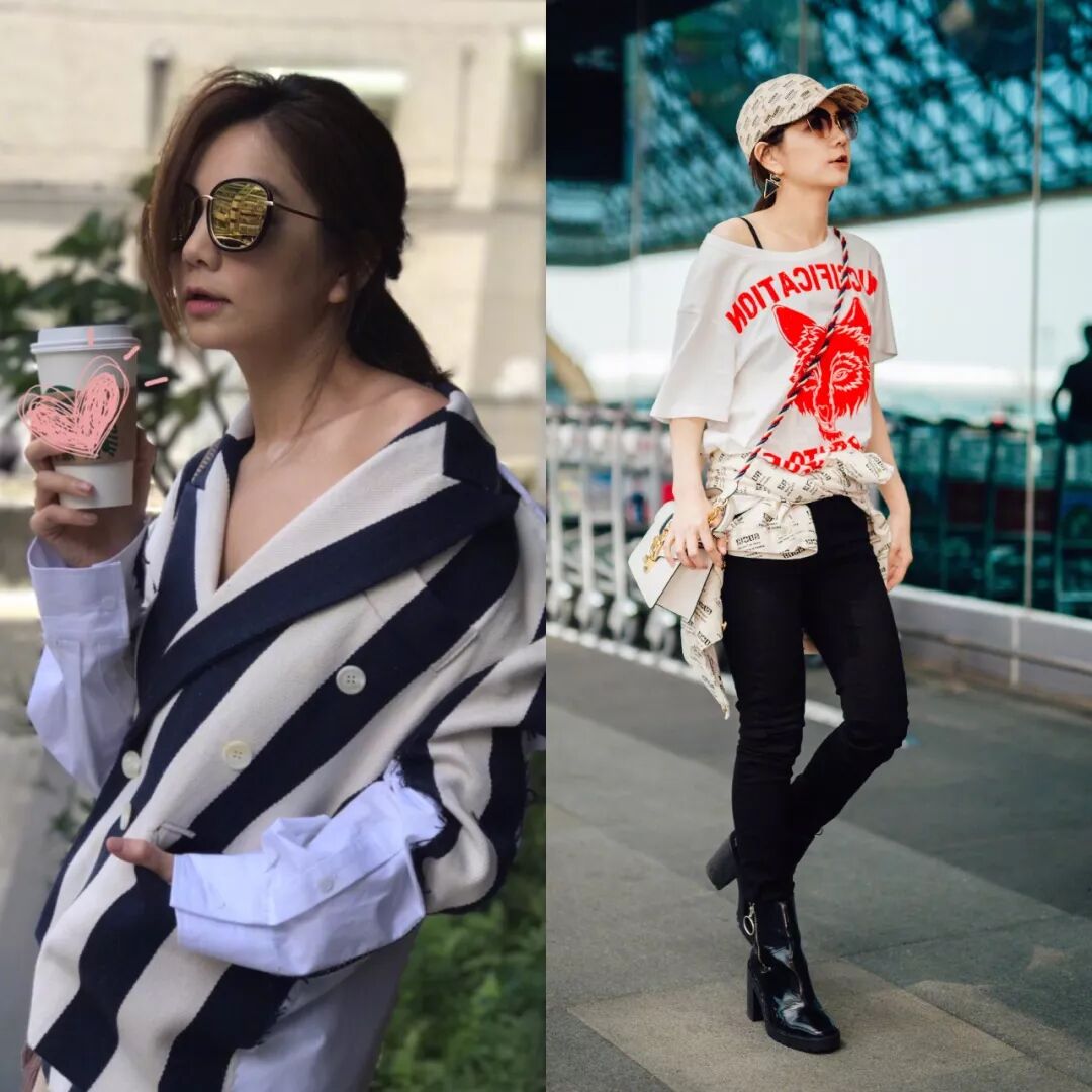 虽然有年代的滤镜效应,但可以看出,当时的Ella肯定和时髦无关。哪像现在,不仅镜头前的打扮能够“种草”,私服也是时刻审美在线。