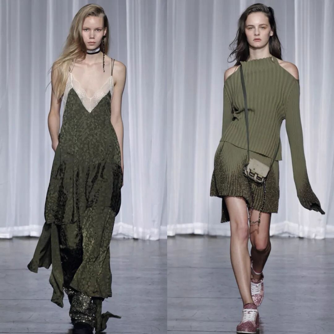 军绿色本身的魅力不仅来源于它天生的复古感,哪怕是用在纱织吊带裙或者轻柔的露肩毛衣上,也不会显得“腻歪”,反倒有种酷劲儿。