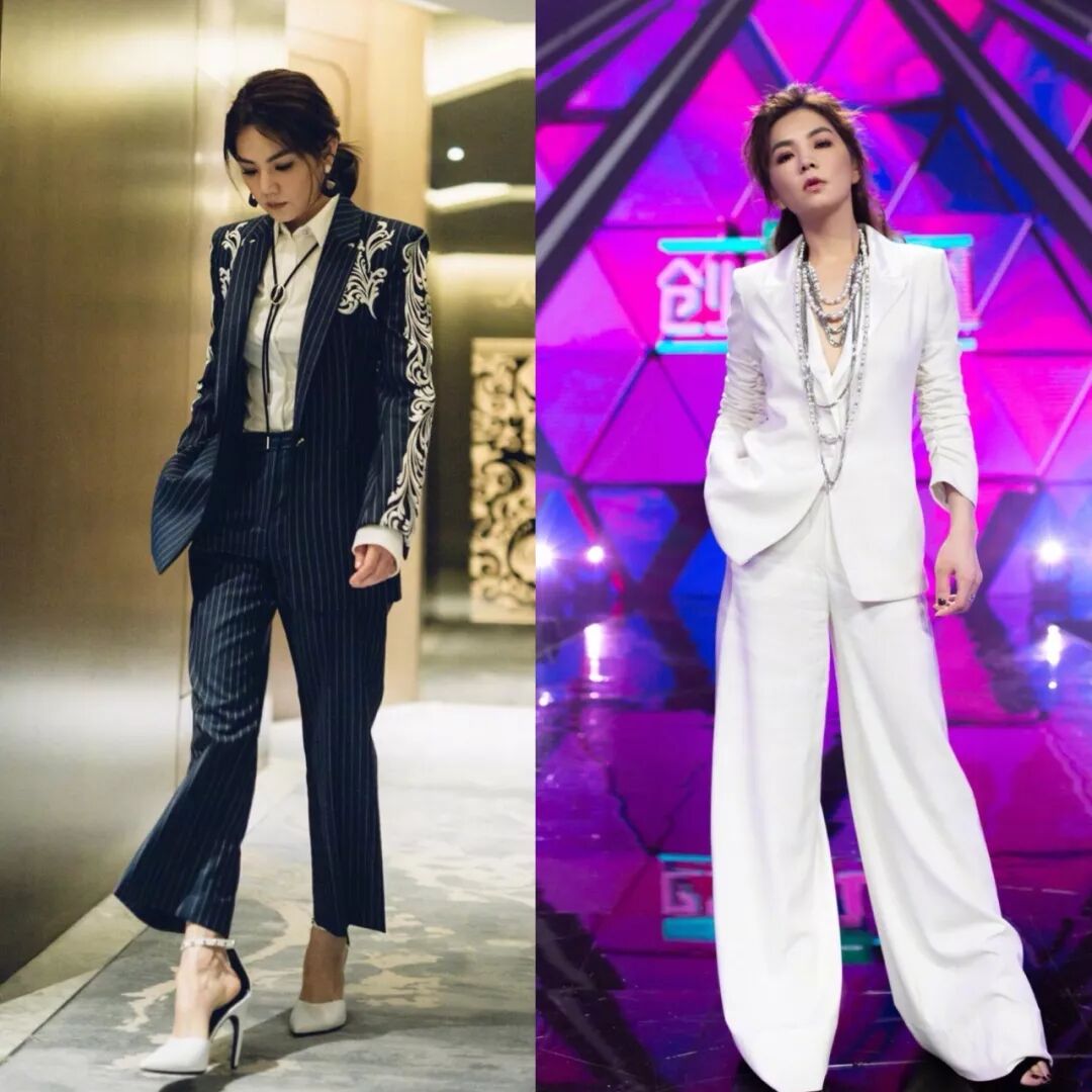 各种各样的套装在她身上轮流换,简约利落又不缺性感,娘man平衡把握得十分恰当。