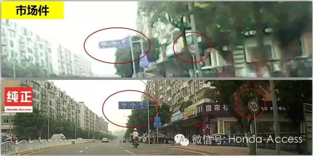 本田纯正用品拍摄出来的画面效果清晰,能清楚看到道路上标志上的详情内容。