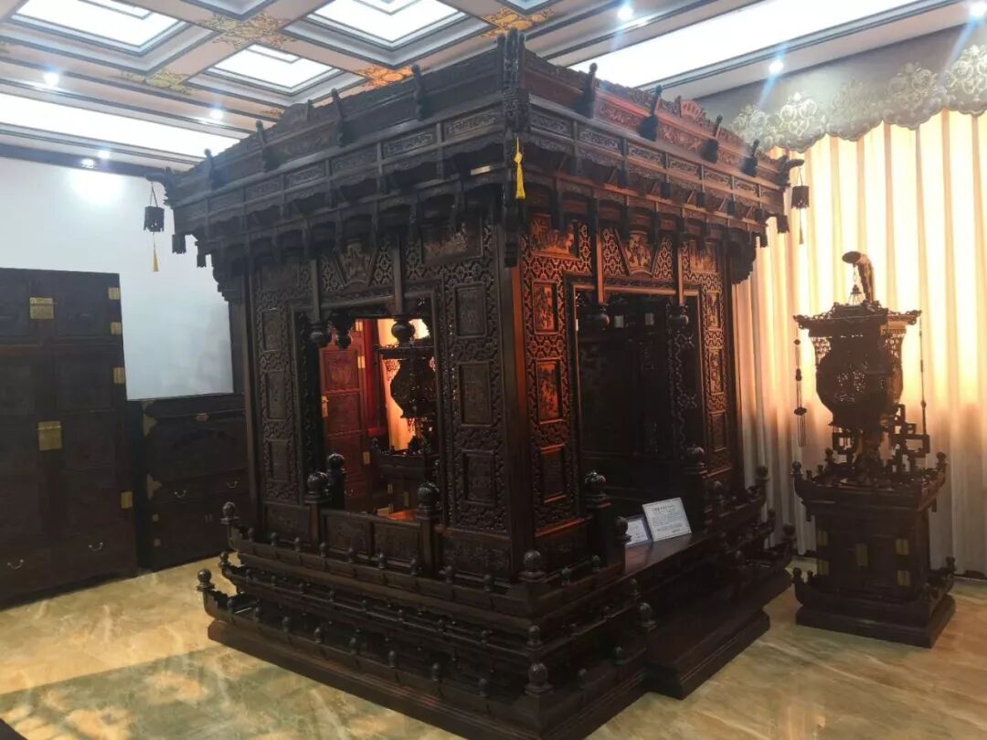 此件作品还曾被国家某博物馆看中,欲加以收藏。但贾一平则觉得,这样的作品是不可复制的,他还是将其带回了东阳,并成为明清宝典艺术家具公司的明星产品。