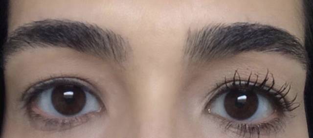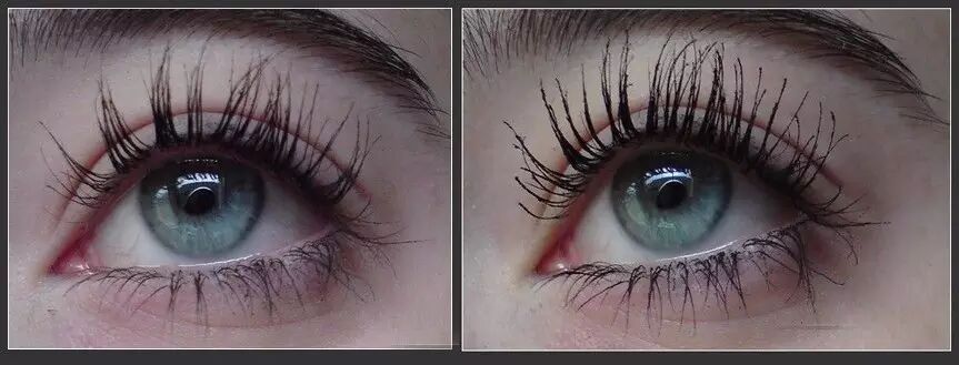 ▲涂抹前(左图)涂抹后(右图)涂睫毛膏前后对比也是相当明显的。