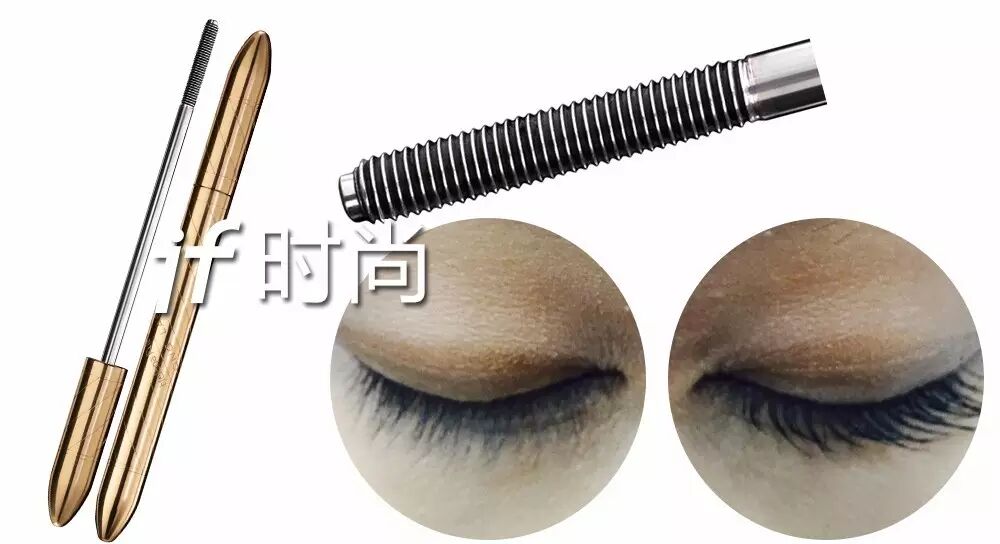特色:螺丝钉纹路的金属刷头,沾取睫毛膏体比较少,靠着中间的凹槽涂抹到睫毛上,适合打造淡妆。