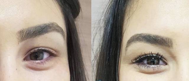 ▲左图只涂了眼线,睫毛基本显现不出来,按照上面的方法涂完之后,右图她的睫毛看起来长了很多,也卷翘了也浓密了。
