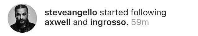 另外,今天还发生了另外一起性质相似的事,所以我们最终打算放在一起说。Steve Angello重新关注了Axwell和Ingrosso,这让西方很多EDM粉丝开始怀疑Swedish House Mafia有可能重组。不过客观来说,我们觉得重新关注与重组还是差很多的。也就这么一说,是否重组就看他们心情吧。