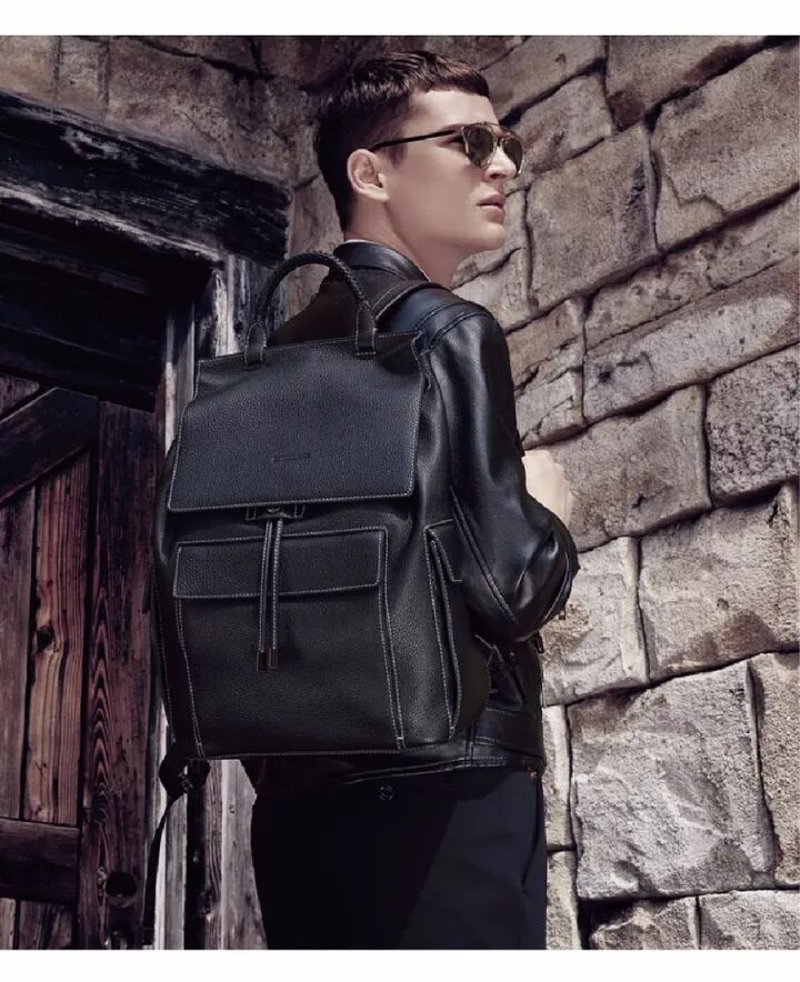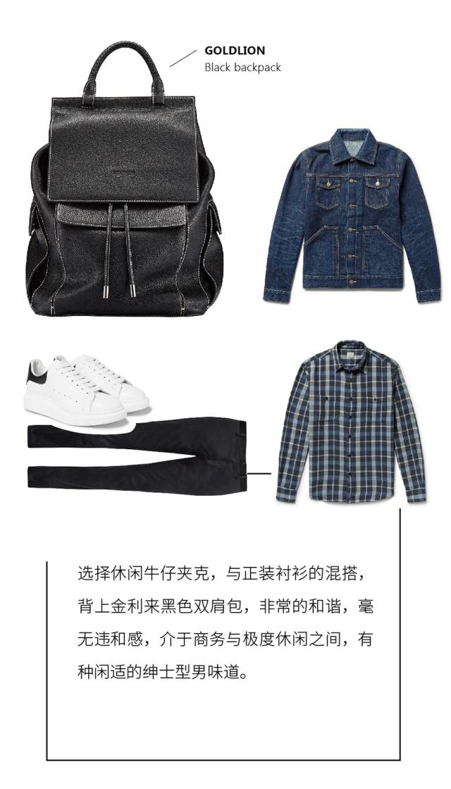 在这组大片中,夫仔选择的正是金利来皮具“质型系列”黑色背包,品质感突出,款式大气时尚,与黑色夹克搭配,随性自然,硬朗又不失帅气,有型有范儿!