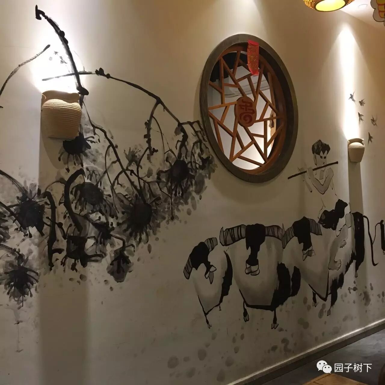 下班后与有才到十里八乡吃湘菜。墙上的一幅画,看了许久,应该是4只小牛。