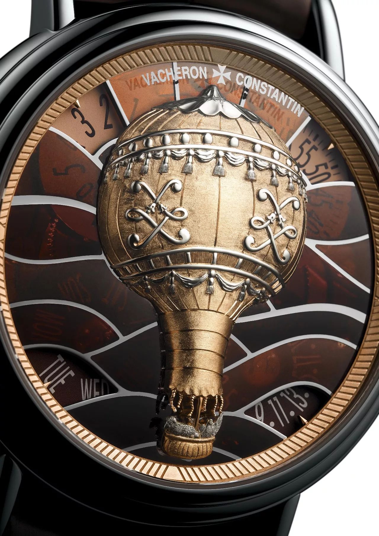 今年艺术大师系列Les Aérostiers 热气球腕表,用腕表记录了人类飞行梦想,通过微缩工艺还原了 1783- 1785 年之间在法国完成的五次热气球飞行壮举。