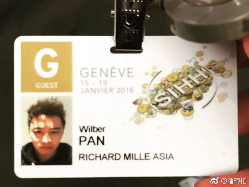 姐给大家解读下这张工作证,潘帅其实是作为Richard Mille 品牌vip 客户来参加日内瓦表展(简称SIHH)的。