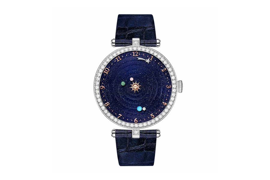 梵克雅宝的诗意行星腕表跟卡地亚的猎豹腕表有点像,都是“没想到居然有这种操作”。这款表的外形有种凝望星空的感觉,从颜值来看绝对是腕表界的小仙女了。