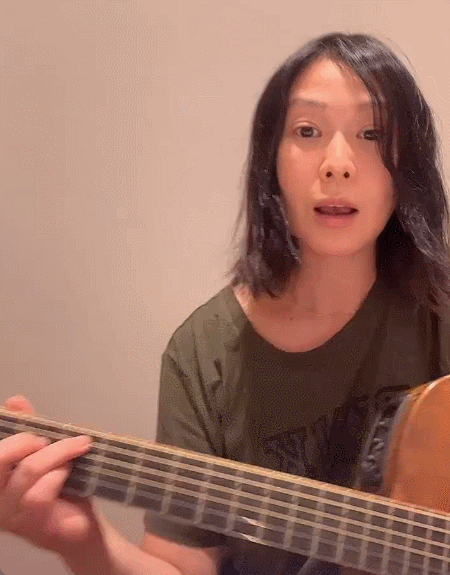 只要稍稍留意她的微博,就发现她是个大大咧咧的人。有时候刚陪儿子踢完球,披头散发兴致来了,也能抱着吉他上来录段曲子分享。