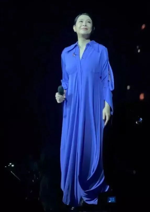 蓝色长裙也显出了年龄感。
