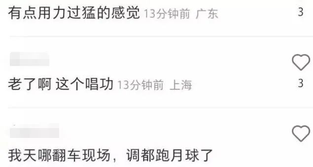 还有人质疑她的唱功大不如前了:唱《成全》的时候,高潮部分跑调还破了音。