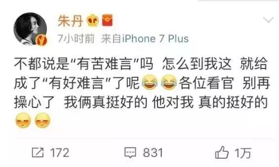 最后逼得朱丹亲自发微博解释“我俩挺好的”