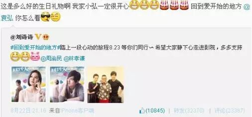 因《步步惊心》走红后,刘诗诗主演的电影《回到爱开始的大方》也登陆各大影院,胡歌这条貌似调侃实则暗含深意的微博让无数“弘诗党”为之沸腾!因为8月23日这天,还是“小红花”的生日!