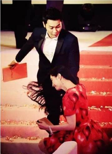 李晨之前通过微博晒女友范冰冰参加活动的照片,俩人手牵手下台,突然范冰冰摔倒了,吓得李晨一脸惊。不过这头发甩的你值得拥有。