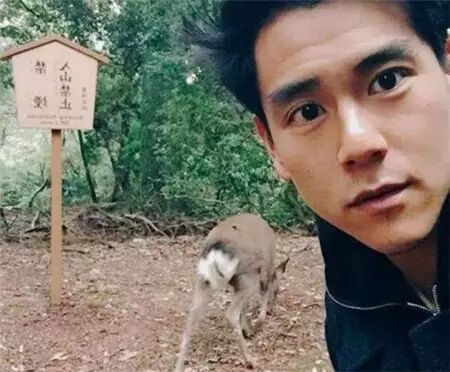 和母亲一起去日本奈良看小鹿的照片