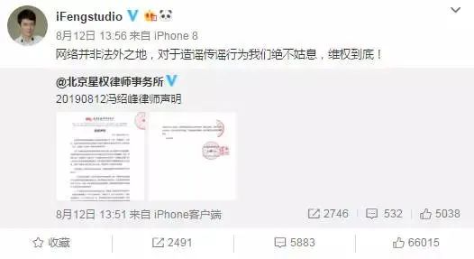 师函警告造谣者,态度强硬使得一些营销号删掉了一些谣言。然而,有一位爆料者依旧不惧怕冯绍峰的律师函警告,回应态度也很强硬,表示自己并没有造谣,就算要打官司也会奉陪到底,还发了一篇长文细说赵丽颖和冯绍峰的一些事件,内容非常详细,似乎这位爆料者掌握了不少的信息。