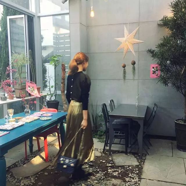 秀英身穿黑色T恤搭配闪闪发光的金色长裙,展示了与众不同的时尚感。郑京浩也身穿白色衬衫和紧身牛仔裤,拎着一个大大的包。