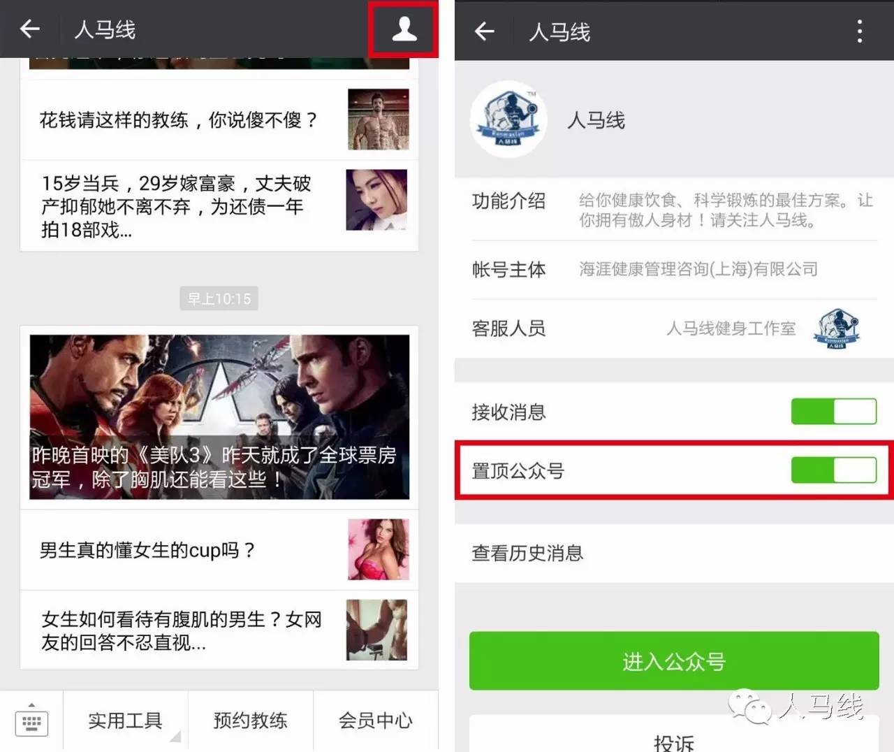 还怕找不到“人马线”微信号?置顶公众号实时掌握前沿健身咨询!