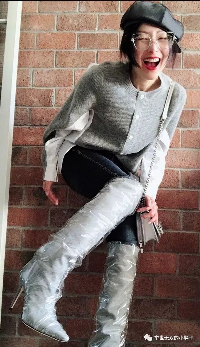 文艺女青年风格的,不过看得出来郑秀文好像对“塑料雨靴”情有独钟哦!