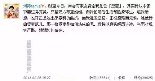 就在众人议论纷纷的时候,2013年结婚的第五年,刘涛在微博发长文,详细讲述了婚后老公破产、二人一路艰辛的真实经历。