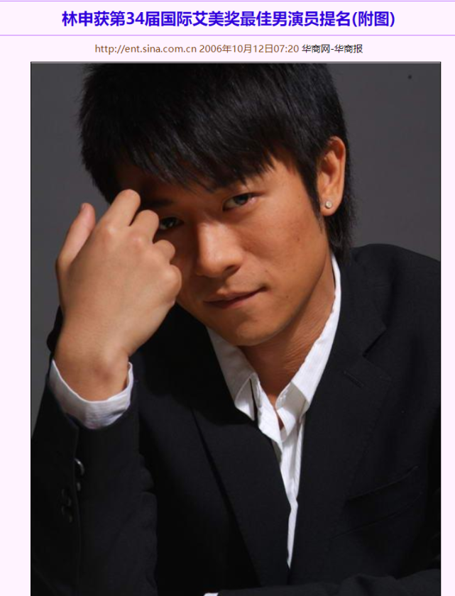 因此,林雨申为成为了亚洲男演员中第一位入围艾美奖的,紧接着的2007年他也成功以评委的身份来到该奖项。