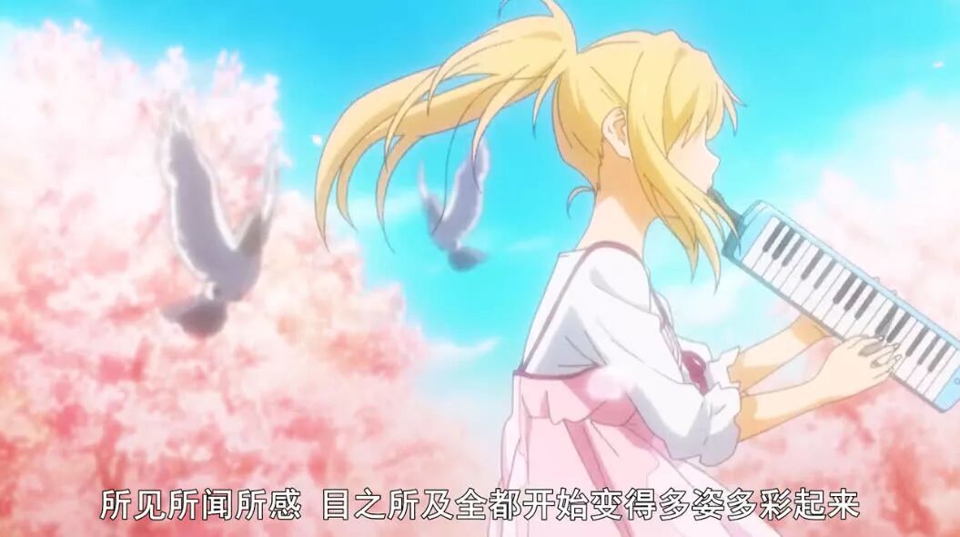 没人开导没人告诉他实情,公生一股脑地把错归咎在自己和钢琴的身上。就连他自己也觉得自己的人生是没有色彩的,今后也许会一直这样下去。不过就在初三那年的春天,他与一位少女偶然(其实是是薰的套路)的相遇,使他的人生重新染上了缤纷的色彩。