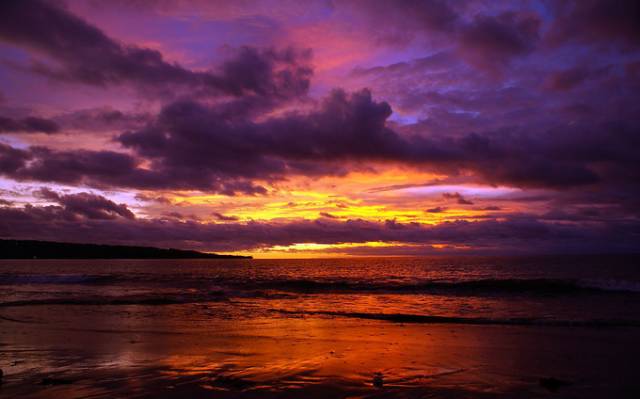 金巴兰海滩有巴厘岛最美的日落,你只需坐在海边,静静地等待太阳西沉,随便按下快门都是一张明信片级的风光大片。这边日落的早,6点左右。吹吹海风,看看日落,好不惬意。黄昏很棒,夕阳落到海平面以下,天空就变成了调色板,金黄、葡萄紫、粉红、洋红、……层次分明地呈现出来,点缀着成团的云朵。