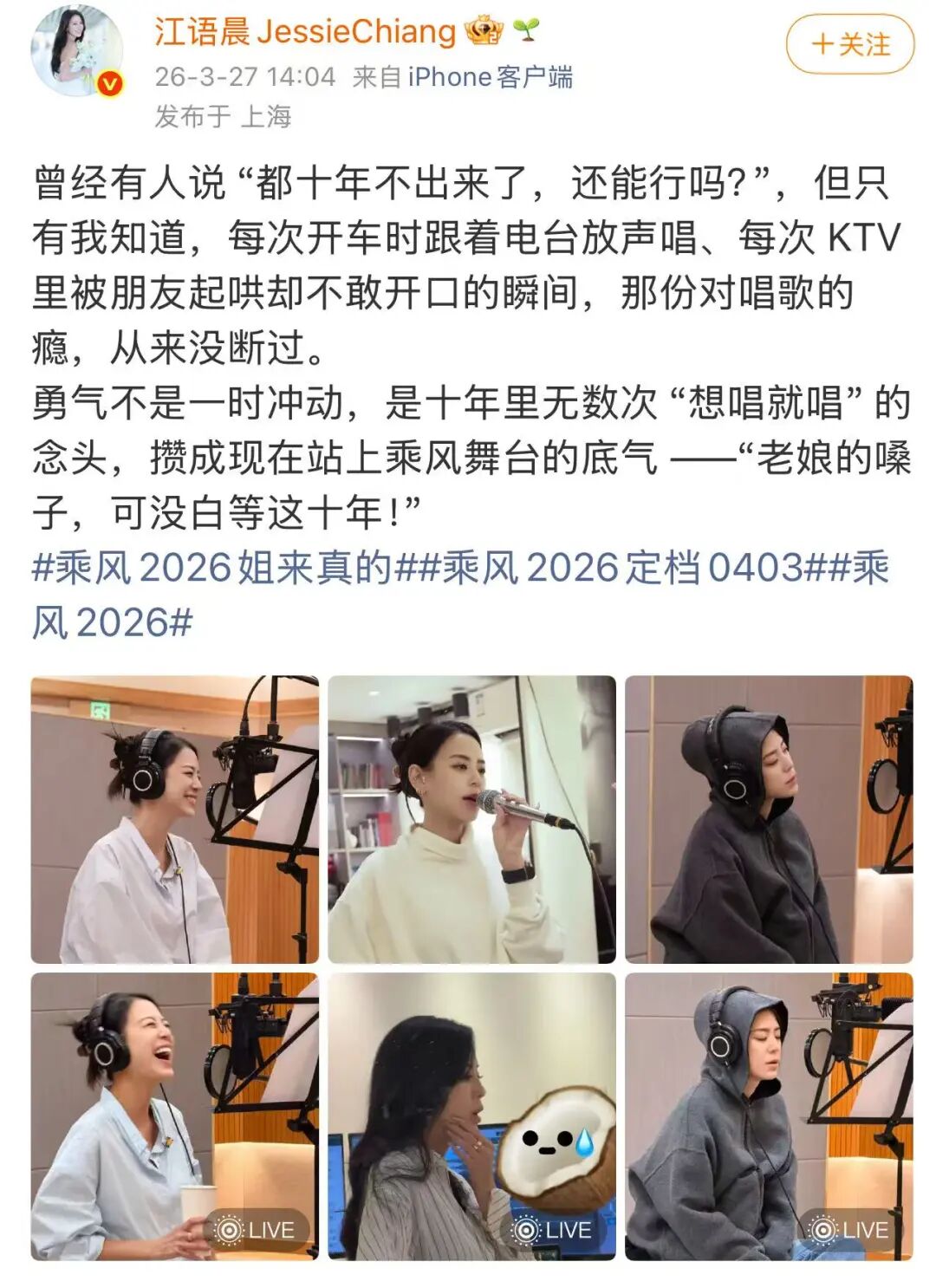 从江语晨发布的社交媒体来看,她对《乘风2026》这个舞台,是很期待的,她也表明并不是“一时冲动”。