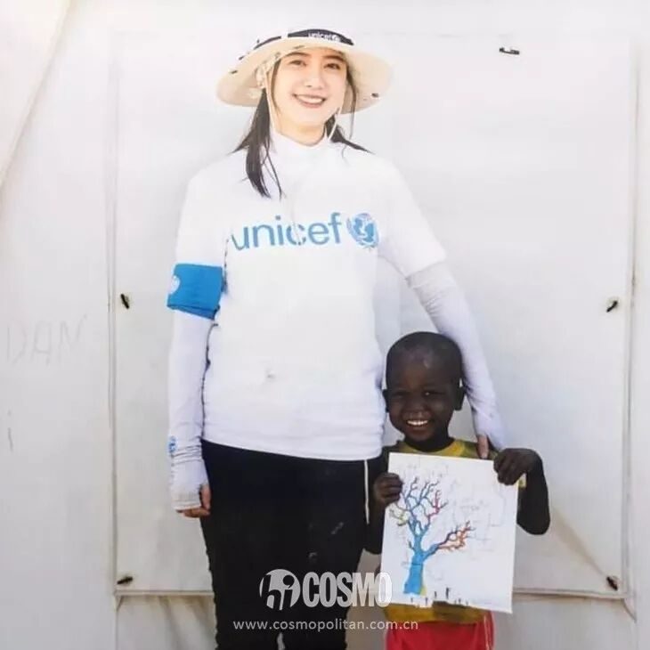她不仅参加了韩国的联合国儿童基金会,还在非洲的贫穷国家乍得进行了志愿者活动。