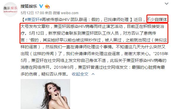萧亚轩本人也无奈的站出来,直接提到以前她就被造谣过患有HIV,但都是一笑置之。