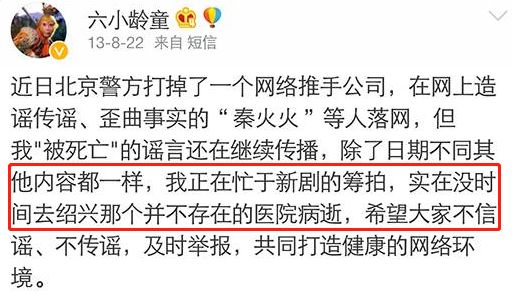 报案后,六小龄童“被死亡”的消息确实消停了许多。