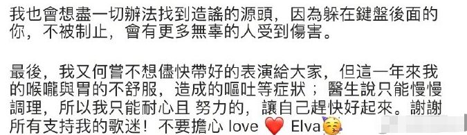 萧亚轩澄清说,这一年多只是喉咙和胃不舒服,有些呕吐症状。