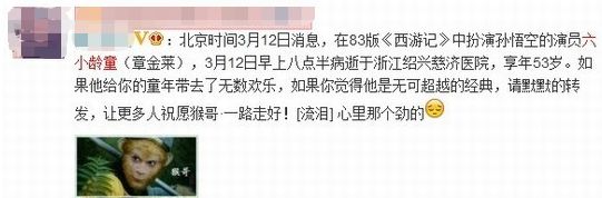 气得六小龄童只能再一次站出来跟所有人解释:我还活着!!