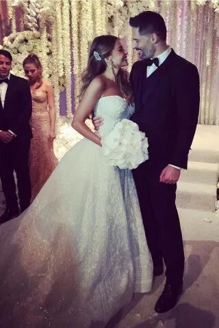 还记得美剧《摩登家庭》中身材爆好的年轻“火辣奶奶”Gloria么?她就是哥伦比亚女星索菲亚·维加拉,2015年与出演《蜘蛛侠》中弗拉什·汤普森的男星乔·曼根尼罗(Joe Manganiello)于佛罗里达完婚。她完美的身材将Zuhair Murad品牌这一巴洛克宫廷风格的奢华礼服驾驭的贵气典雅,锦缎嫁裙、露肩设计……好身材值得拥有~