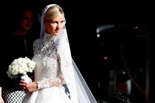 La rampolla di casa Hilton (sorella di Paris) ha sposato a Londra l’erede bancario James Rothschild nel 2015 in abito interamente in pizzo firmato Valentino.