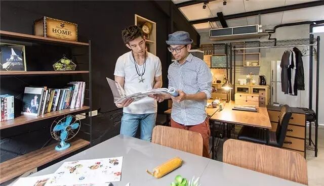 工作区集中在明亮的玻璃落地窗旁,最外侧以伸缩长桌当做主要开会处,平时以不占空间的四人桌为主,对小型工作室来说最为刚好。