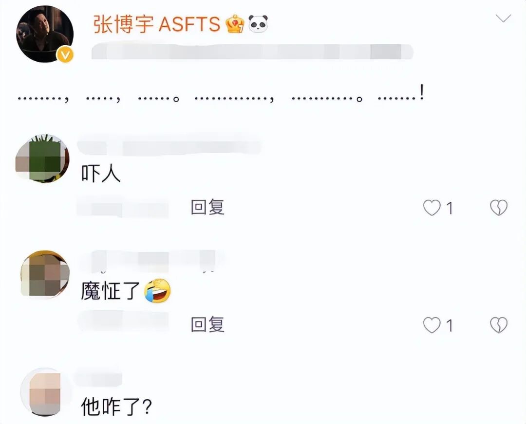 不光如此,张博宇就连在自己的社交平台上都很少露面,有时候只留下一串标点符号,网友在底下评论:“建议张丰毅多关注儿子的精神状态。”