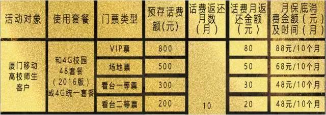 温馨提示:门票限量2500张,办完即止。以上每档活动,每个手机号码仅可参加1次。具体办理详询厦门移动以上指定营业厅。