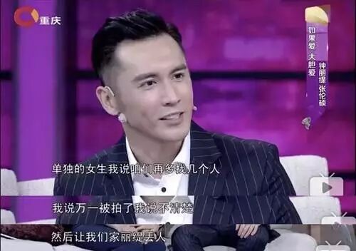 再看看人家的婚姻观,那叫一个洁身自好!被问到有女生单独约他出去,张伦硕回答:单独的女生我说再找两个人,万一被拍了说不清楚,让我们家丽缇丢人。这句话可以说是教科书级别的答案了!