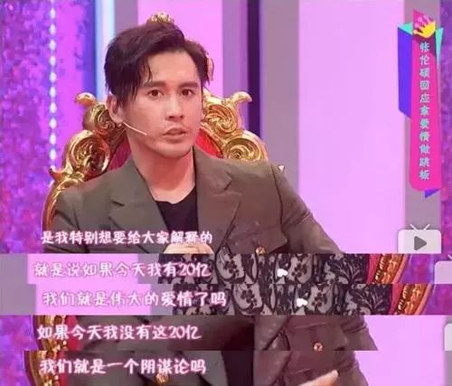 他说,如果他有20亿,就是伟大的爱情了吗?如果没有,就是一个阴谋论吗?是啊,好的爱情从来和金钱无关,是世俗的眼光太过狭隘,非要用物质来衡量一段感情。