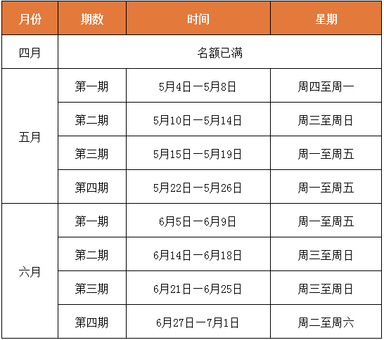 ◇4月行程名额已满,现审批通过的需从5月开展;