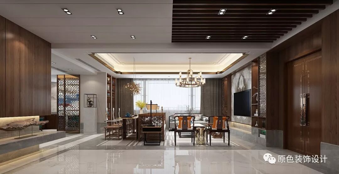 围绕“灵动空间,东方气韵;温润木色,道法自然”的设计理念,设计师在材质上更多的选用灰色、浅咖色大理石、木饰面、实木花格和木地板,再结合灯光来增加空间的序列感,给人一种质朴与和谐的非凡体验。